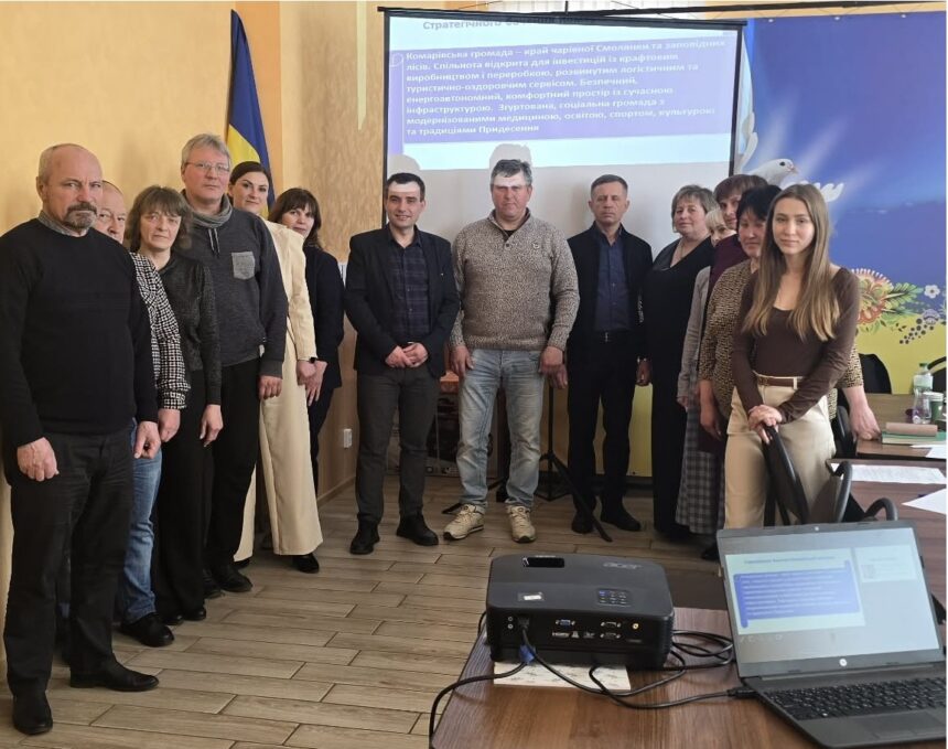 «Комарівська громада – край чарівної Смолянки та заповідних лісів, екопростір відновлення та живих традицій Придесення. Місце, де природа поєднується з крафтовим виробництвом і переробкою, сервісами відпочинку й оздоровлення. Громада з людиноорієнтованою та енергоефективною інфраструктурою, якісними й доступними послугами в освіті, медицині, культурі й спорті. Безпечна, затишна та згуртована спільнота соціально відповідальних і підприємливих мешканців, де хочеться жити та працювати», – такий проєкт стратегічного бачення сформували учасники навчання зі стратегічного планування, яке проходило 14 квітня в Комарівці.