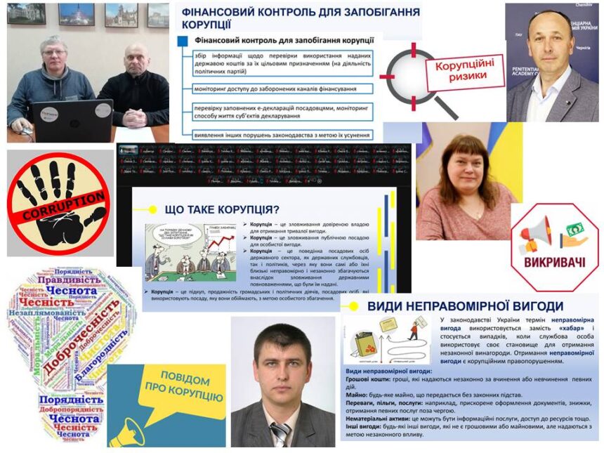 Крім цього, упродовж наступних трьох днів під час освітнього процесу спікери-науковці з Пенітенціарної академії України та Національного університету «Чернігівська політехніка» акцентують увагу публічних посадовців на корупційних ризиках під час реалізації функцій держави або місцевого самоврядування; етиці та доброчесності на державній службі та службі в органах місцевого самоврядування; на проявах корупції та її негативному впливі на досягнення цілей сталого розвитку; відповідальності за вчинення корупційних та пов’язаних з корупцією правопорушень.