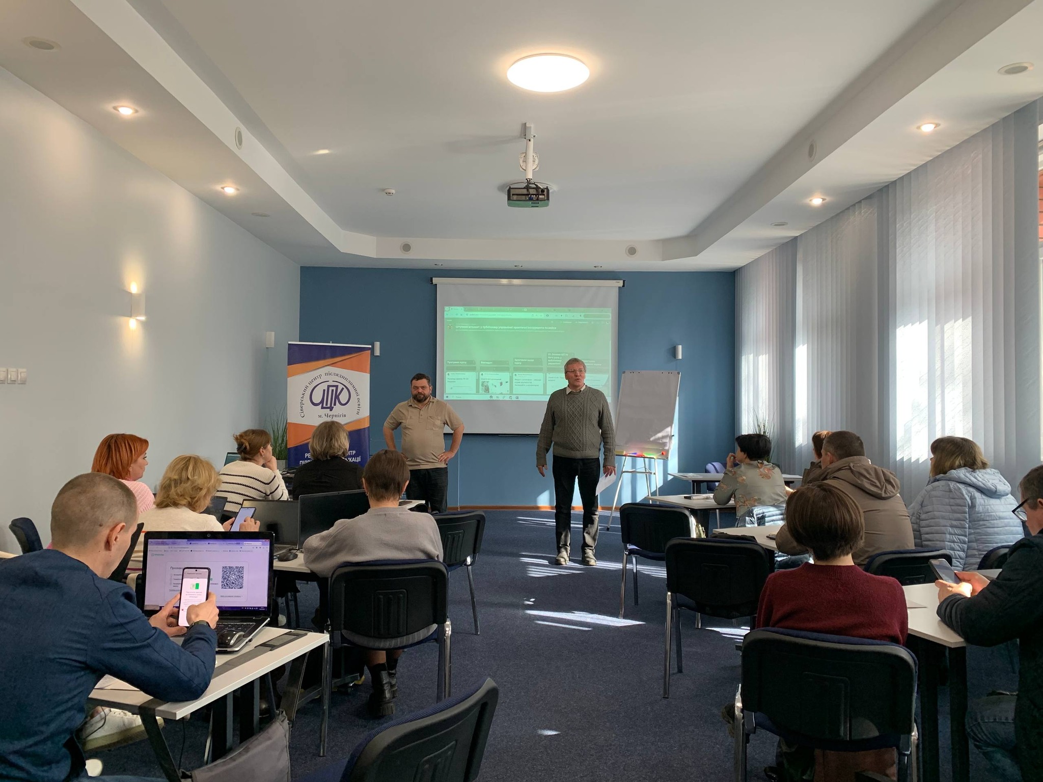 «Це вперше в Україні реалізується така експериментальна програма навчання зі штучного інтелекту протягом двох днів для державних службовців та посадових осіб місцевого самоврядування» – з такого твердження розпочалося очне навчання «Штучний інтелект у публічному управлінні: практичні інструменти та кейси». Проходило воно 19 – 20 березня та привернуло увагу 38 слухачів із 18 територіальних громад Чернігівщини, Чернігівської районної ради, низки управлінь.